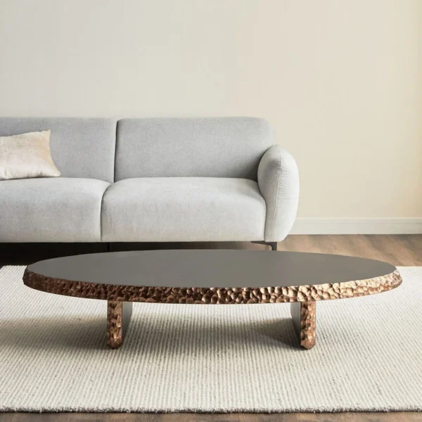 تتميز هذه الطاولة بتصميمها البيضاوي الأنيق الذي يضفي سحرًا خاصًا على غرفة المعيشة. بفضل شكلها البيضاوي، يمكن استخدامها بشكل مركزي في الغرفة دون أن تشغل مساحة كبيرة.