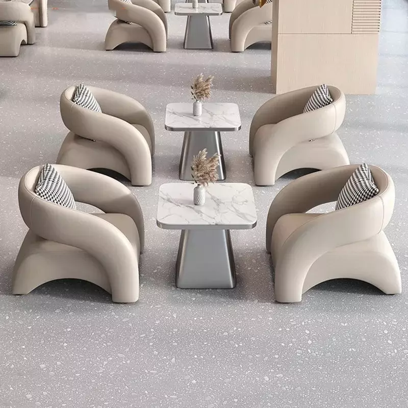 إذا كنت تبحث عن مجموعة متكاملة لمقهى أو مساحة ترفيهية، فإن هذه الطاولة القهوة مع كراسيها توفر لك الحل الأمثل. الكراسي مصنوعة من خشب هندسي وخشب زان روماني عالي الجودة، مع مقاعد محشوة بإسفنج عالي الجودة ومغطاة بجلد فاخر.