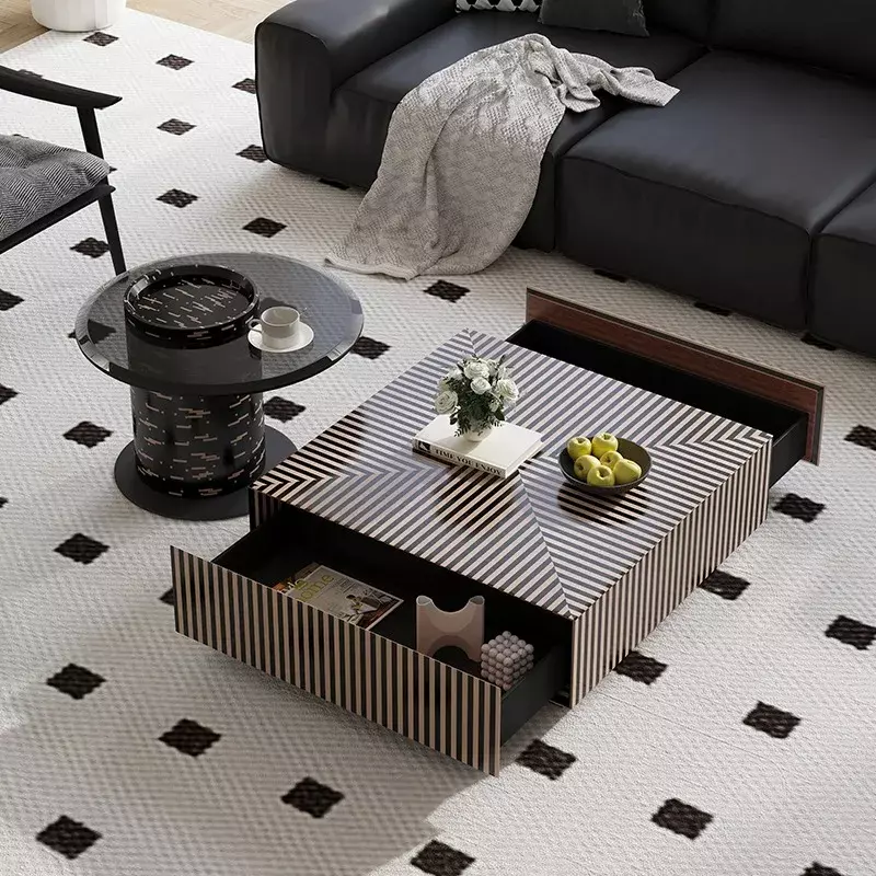 اقتني هذه الطاولة المميزة لإضافة لمسة لغرفة المعيشة. يتميز هذا الطقم بتصميمه البسيط والفريد الذي يضفي على المكان لمسة من الأناقة والجمال. يمكن تنظيف هذه الطاولة بسهولة بمسحة رقيقة فقط عند الحاجة، مما يجعلها خيارًا مثاليًا لمن يبحث عن الجمال والعملية في نفس الوقت.