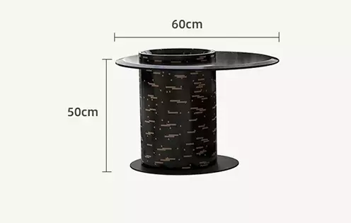 أما الطاولة الدائرية، فتأتي بالمقاسات التالية: