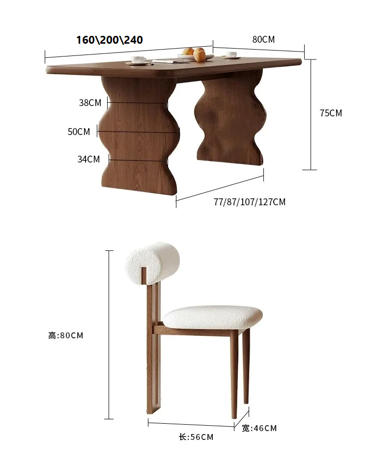 160 cm table with 6 chairs ,200 cm table with 8 chairs ,240 cm table with 10 chairs |