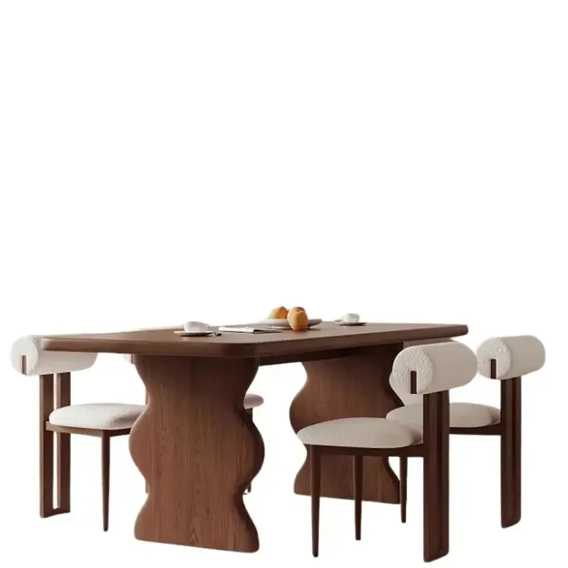 - This dining table and chairs features a wavy base and rectangular top that adds elegance to the space.