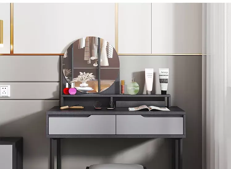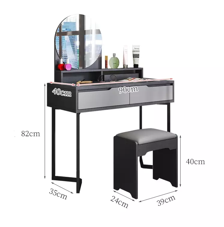 - تتميز التسريحة بتصميمها الأنيق ومرآتها الدائرية وسطحها الواسع الذي يستوعب جميع مستلزماتك بشكل مثالي كما يأتي معها كرسي متين ومبطن جيدًا لتستعدي براحة قبل الخروج.