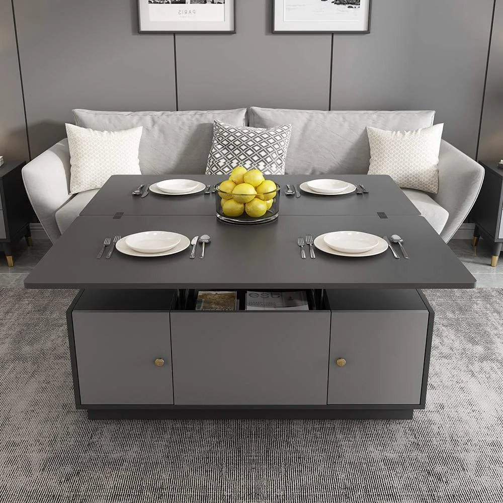 طقم طاولات مميزة لغرفة المعيشة طقم متكامل يجمع بين طاولة تلفزيون عصرية قابلة للتمديد وطاولة قهوة بخاصية الرفع، مثالي لتنظيم المساحات وتخزينها بأناقة في منزلك. يتميز بتصميمه البسيط والجذاب المصنوع من خشب متين عالي الجودة ومعدن قوي.