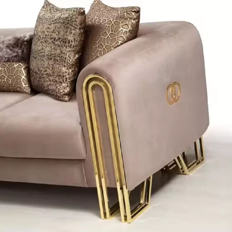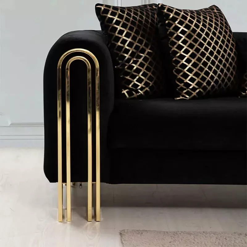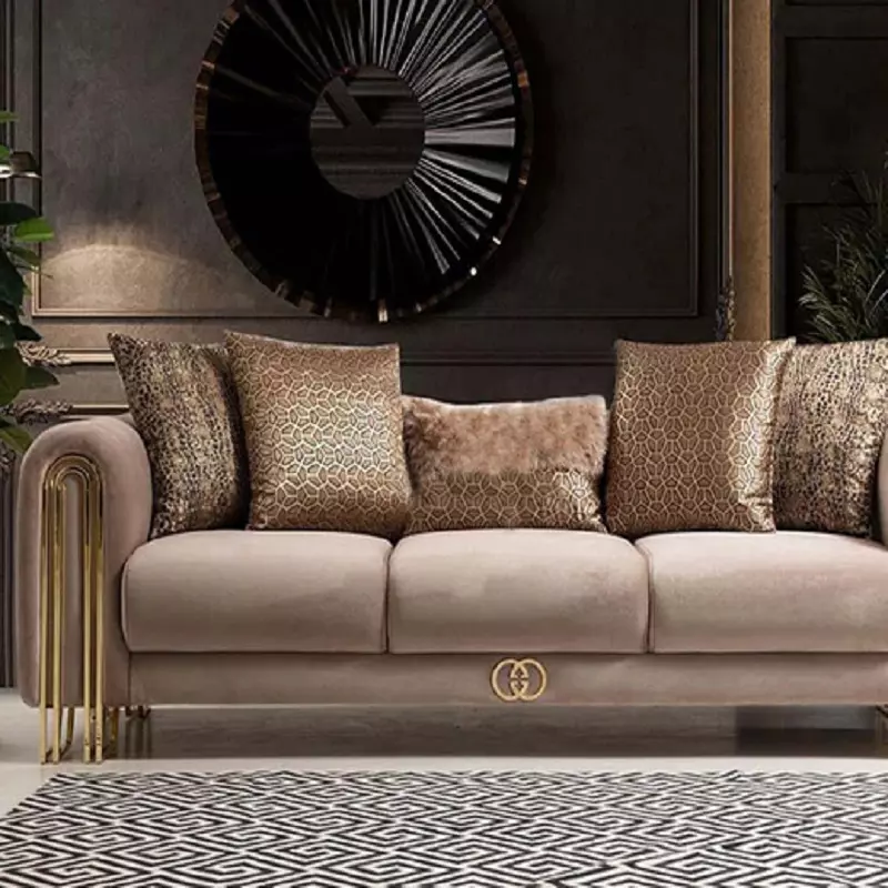 This sofa adds a touch of luxury and elegance to your home with a chic, regal design featuring high-quality materials. It features a Romanian beech wood frame and a sturdy metal base, covered in soft velvet fabric and filled with high-density foam for ultimate comfort. Available in four sizes and multiple colors to suit all tastes, it's easy to clean and comes with a two-year warranty against manufacturing defects in the Gulf countries.