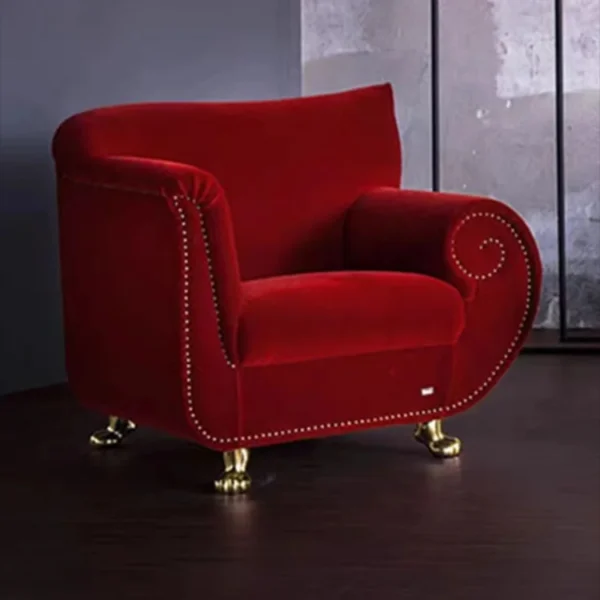 A sofa set consisting of a single chair, a two-seater sofa, and a three-seater sofa. Enjoy a touch of luxury and elegance in your home with this distinctive Italian sofa set from Master Room. This set features a modern design that combines comfort and beauty, adding a royal, sophisticated touch to your living room.