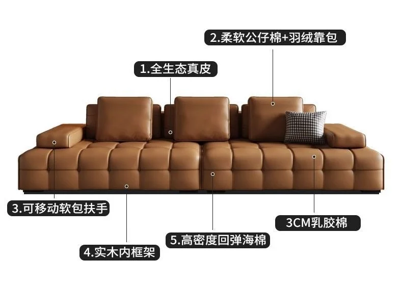 - This modern leather sofa for the living room features an elegant and luxurious design that suits people with refined taste.
