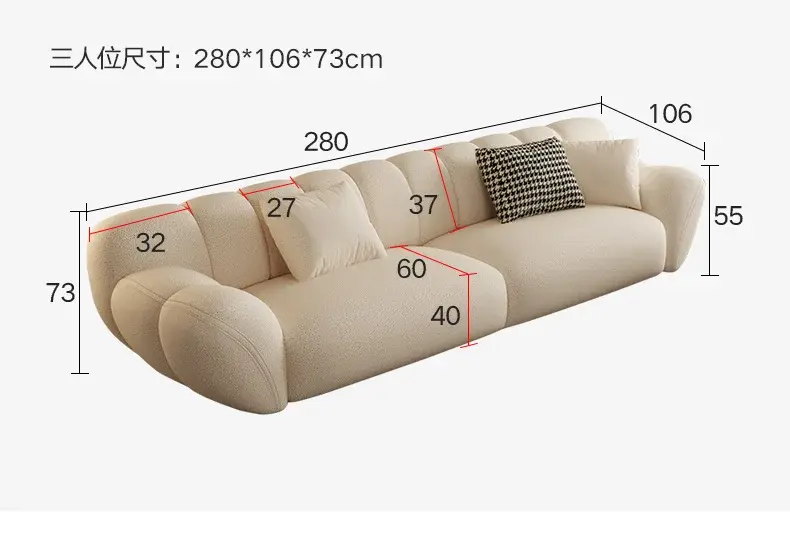 - مقاس كنب 280 سم: ارتفاع المنتج (سم): 73، عمق المنتج (سم): 106، عرض المنتج (سم): 120.