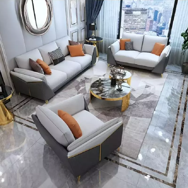 Modern two-tone sofa set with multiple features