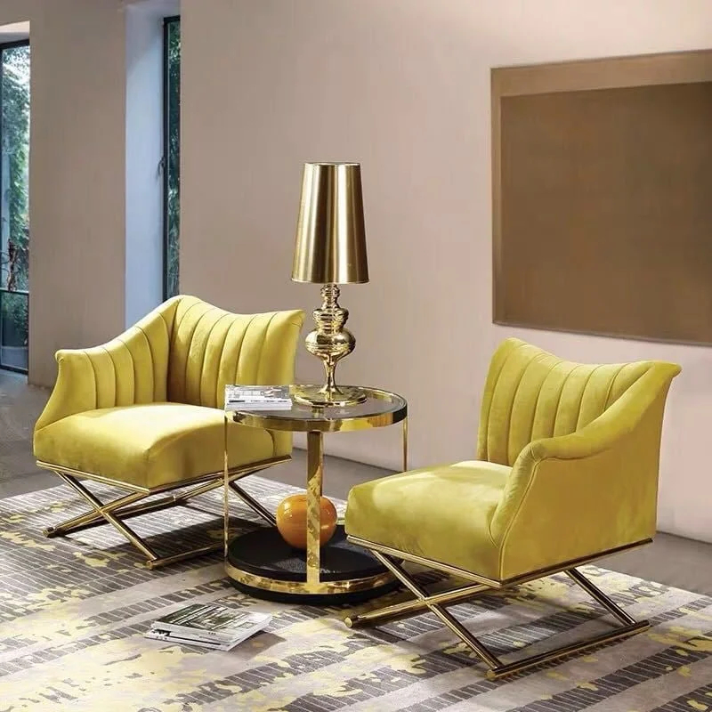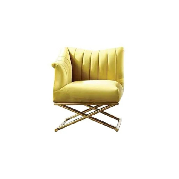 تم بناء هذا الكرسي بهيكل متين وأرجل مصنعة من معدن عالي الجودة، مطلي بلون ذهبي يضيف لمسة من الفخامة الراقية، وفي نفس الوقت، يوفر قاعدة قوية ومستقرة. الإطار القوي يضمن تحمل القطعة واستدامتها لسنوات طويلة من الاستخدام اليومي.