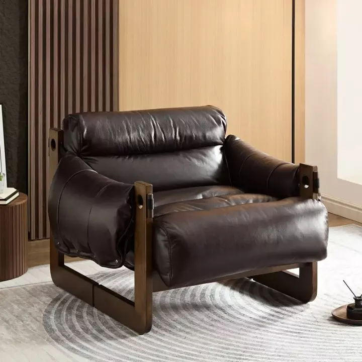 هذا الكرسي الفريد يتميز بتصميمه الإيطالي الأنيق الذي يضفي لمسة من الفخامة والذوق الرفيع على غرفة المعيشة الخاصة بك. بفضل غطاء الجلد الفاخر، يضمن لك هذا الكرسي ليس فقط الراحة بل أيضًا المظهر الجذاب الذي يلفت الأنظار. تنظيفه سهل جدًا، فقط امسحه برفق عند الحاجة ليظل دائمًا في أفضل حالاته.