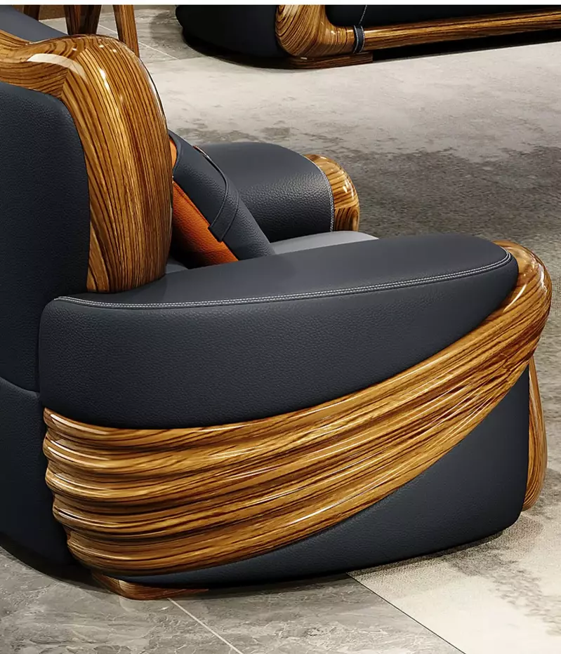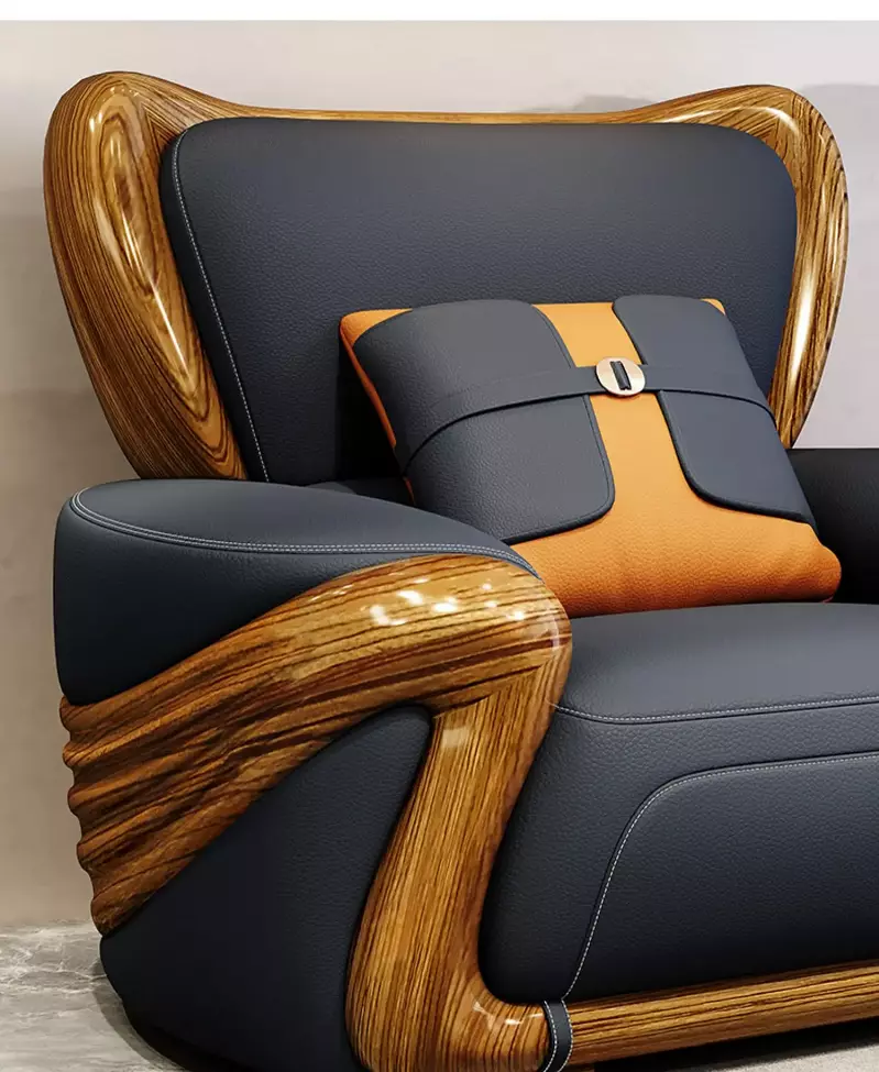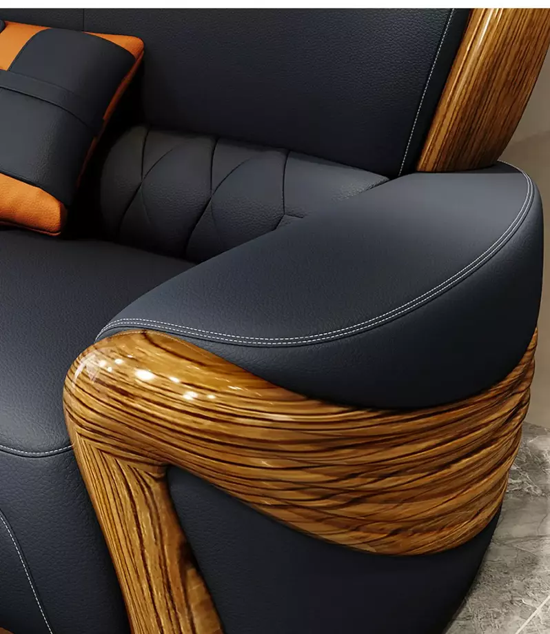 - الخامات : الهيكل مصنوع من خشب هندسي وخشب زان روماني عالي الجودة، محشو بإسفنج عالي الجودة، مغطى بجلد إيطالي فاخر.