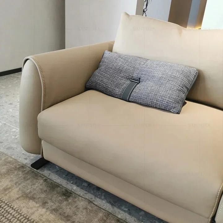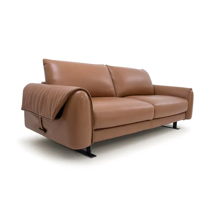 A distinctive, elegant leather sofa that adds a touch of luxury and elegance to your home. Made of high-quality leather with an engineered wood and Roman beech frame, it features a modern design and various dimensions. It's easy to clean and is protected by a two-year warranty. It's an ideal choice for those seeking comfort and elegance in their decor.