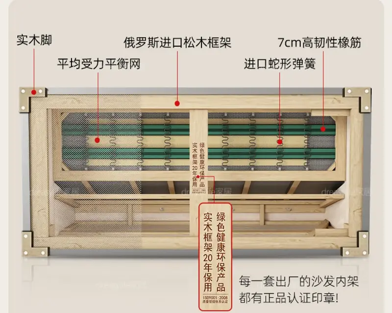 - Sofa materials: high-quality engineered wood and Romanian beech wood.