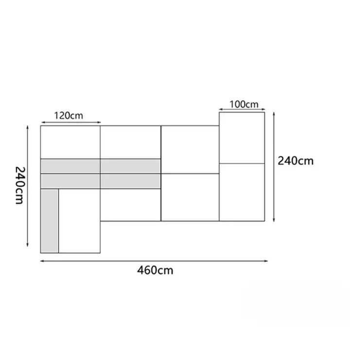 - مقاسات الكنب: ارتفاع المنتج (سم): 85، عمق المنتج (سم): 240، عرض المنتج (سم): 460.