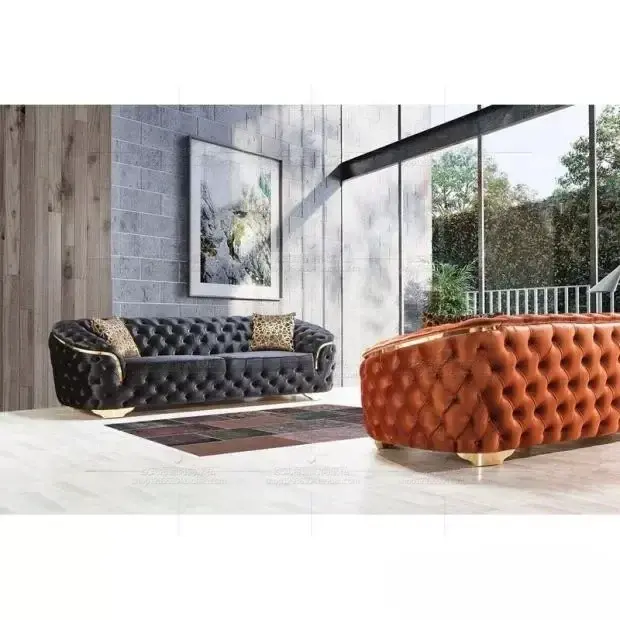 Modern Capitone leather living room sofa