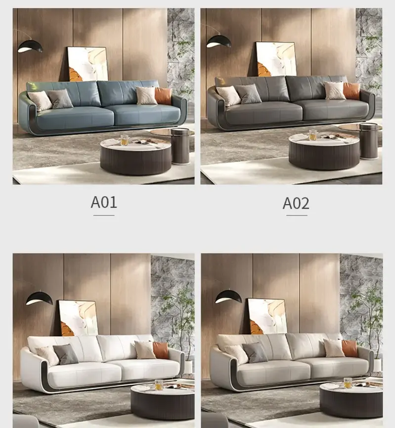 كنب مودرن من تصميم إيطالي مميز يضفي لمسة عصرية وأنيقة على غرفة المعيشة. مصنوع من خامات عالية الجودة، مع هيكل من خشب هندسي وزان روماني، ومحشو بإسفنج عالي الجودة، ومغطى بجلد فاخر. متوفر بمقاسين، 215 سم و280 سم، بألوان متعددة. يأتي مع ضمان لمدة سنتين ضد عيوب التصنيع