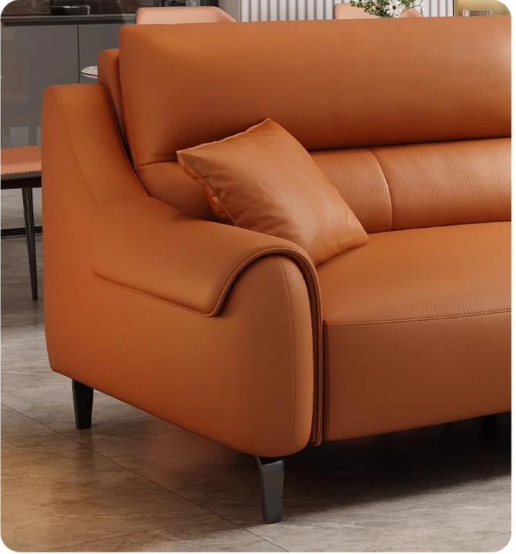 Modern sofa with a comfortable leather design. This modern sofa with a comfortable leather design adds a touch of luxury to your home, becoming an essential piece of furniture in your living room. This sofa is characterized by its high quality and superior comfort, making it the perfect choice for relaxing and spending quality time with family and friends.
