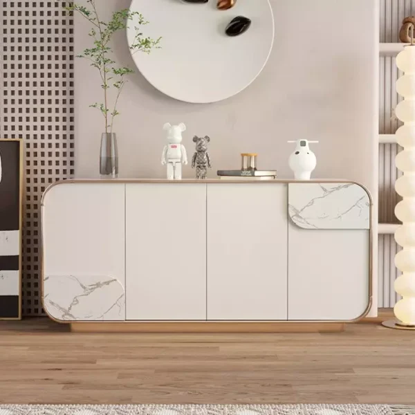 Add a touch of luxury and elegance to your dining room with this stunning buffet table. This table features a design that combines beauty and functionality, with a high-quality marble top and a sturdy Roman beech wood frame. The table offers ample storage space and is easy to clean with a simple wipe. Available in multiple sizes and elegant shades of white and gold, the table comes with a two-year warranty against manufacturing defects, ensuring peace of mind and high quality.