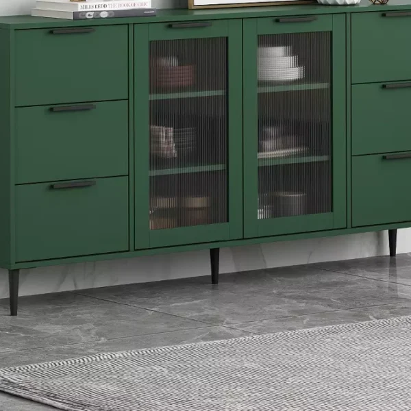 If you're looking to add a touch of elegance and practicality to your dining room, this buffet table is the perfect choice. Made from high-quality engineered wood and Roman beech wood with sturdy metal legs, it combines beauty and durability. Its simple design adds a modern touch to any décor. It comes in a gorgeous green color and comes with a two-year warranty against manufacturing defects.