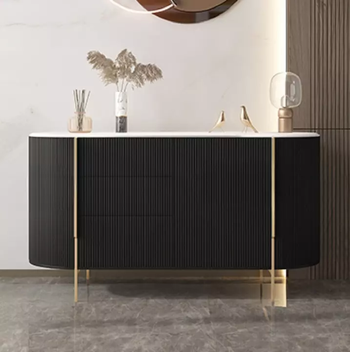 A modern buffet table that combines elegance and practicality, crafted from high-quality engineered wood and beech wood with a sturdy metal base. It features elegant colors (black and white) and a design that suits Gulf homes. It provides convenient storage space and adds a touch of luxury to any room. It's easy to clean and comes with a two-year warranty against manufacturing defects. Ideal for organizing and decorating your home with a touch of luxury and quality.