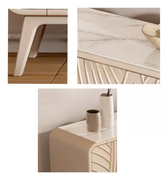 مصنع الهيكل من خشب هندسي وخشب زان روماني عالي الجودة، مما يضمن متانة وصلابة عالية للطاولة. تمتاز المواد المستخدمة بجودتها العالية التي تعزز من عمر المنتج وتجعله قطعة فريدة في منزلك.