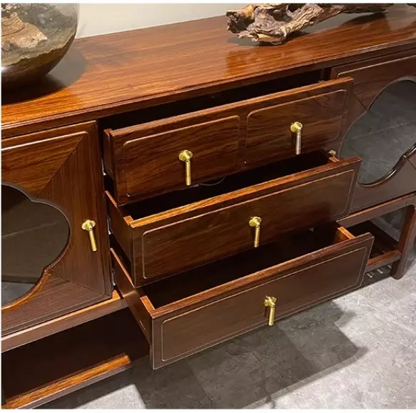 طاولة بوفيه خشب بتصميم عتيق تجمع بين الأناقة والوظيفة. مصنوعة من خشب هندسي وخشب زان روماني عالي الجودة، تضفي لمسة فاخرة على غرفة الطعام. توفر مساحة تخزين واسعة. لونها الخشبي الغامق يمنحها مظهرًا راقيًا. سهلة التنظيف بلمسة بسيطة وتأتي بضمان سنتين ضد عيوب التصنيع في دول مجلس التعاون الخليجي.