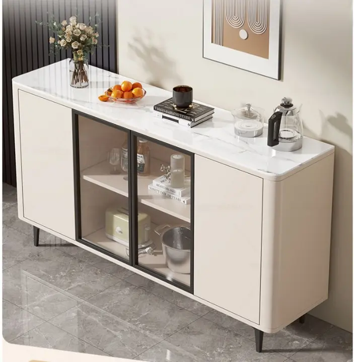 The buffet table is an essential piece for any kitchen or dining room, combining elegance with practicality. It's crafted from high-quality engineered wood and Roman beech wood, with a high-quality marble top for a touch of luxury. It features sturdy metal legs for stability and durability. Available in multiple sizes and a white finish, it comes with a two-year warranty against manufacturing defects in the GCC.