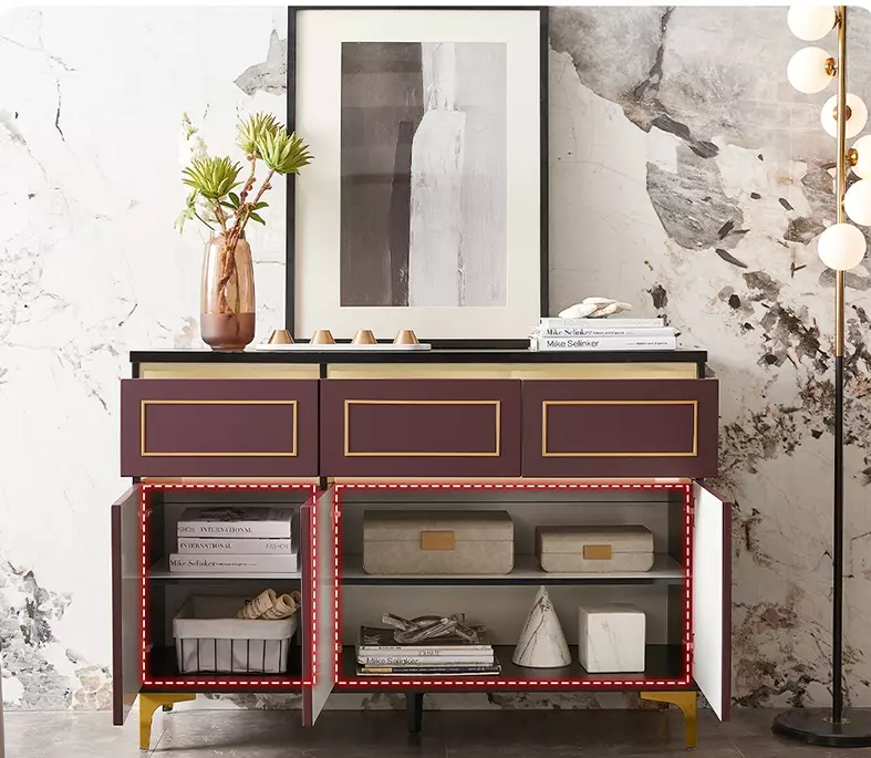 اقتني هذا البوفيه المميز لإضافة لمسة فاخرة لغرفة الطعام. يتميز بتصميمه الملكي العصري الذي يضفي جمالًا وأناقة على ديكور منزلك. يمكنك تنظيفه بسهولة بمسحة رقيقة فقط عند الحاجة.