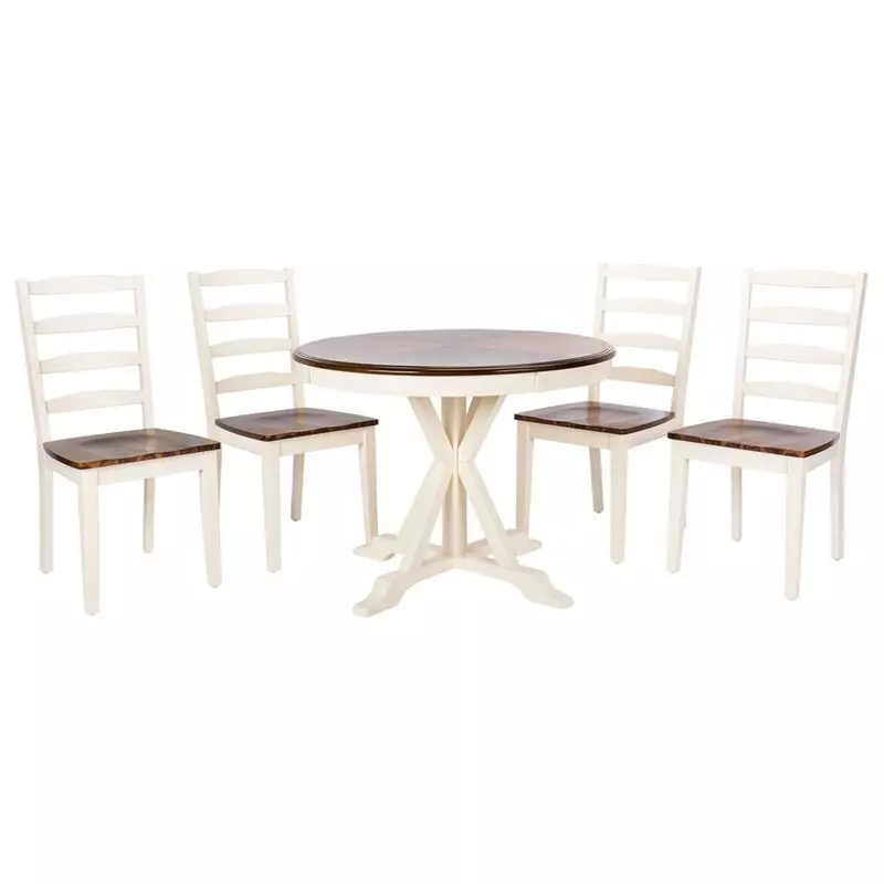 A circular dining table with stylish and practical chairs, crafted from durable beech wood to ensure durability and quality. It features a modern design that complements various decor styles, with multiple dimensions to fit large and small spaces. It's easy to clean and ideal for everyday use and special occasions. It comes with a two-year warranty against manufacturing defects in the Gulf countries.