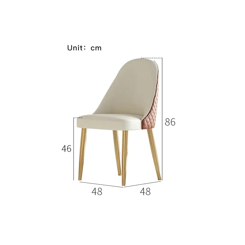 خامة كرسي الطاولة: أرجل من معدن ستيلي مذهب فخم عالي الجودة مع طبقة من الجلد الإيطالي الفخم والمميز المبطن بالإسفنج عالي الكثافة.