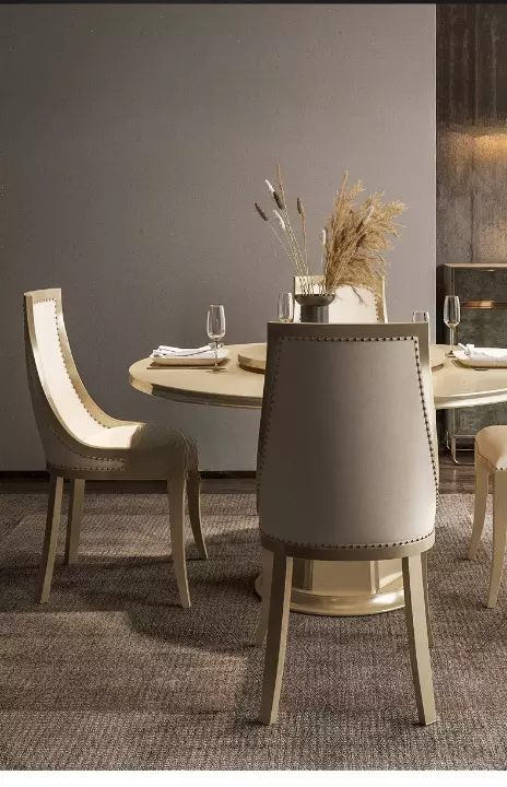 إضافة طاولة طعام مميزة لغرفة الطعام يمكن أن تغير من أجواء المكان وتجعل الوجبات أكثر رفاهية وأناقة. نقدم لكم طاولة طعام مستديرة مع كراسي بتصميم ملكي، مثالية للمناسبات العائلية والجلسات الاجتماعية.