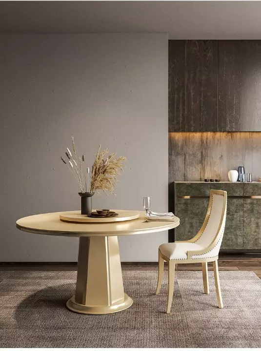 Round dining table with royal design chairs