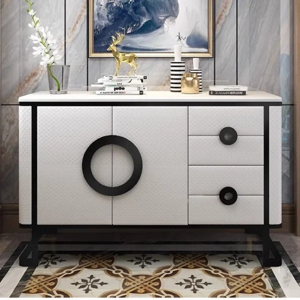 A luxurious buffet table with a modern design that combines elegance and durability. Made of high-quality engineered beech wood with a sturdy metal base for stability, it offers ample storage space and an ideal surface for displaying accessories or organizing dinnerware. It's easy to clean and complements a variety of decor styles, making it a perfect addition to any room in your home.