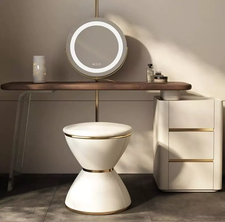 - الخزانة الجانبية تساعد في تنظيم الأدوات والعطور بطريقة مرتبة ومرتاحة.