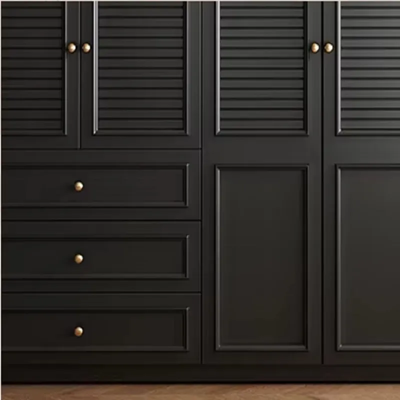 اللون الأسود الفخم يضفي على الخزانة طابعًا أنيقًا يتماشى مع مختلف أنماط الديكور سواء كانت كلاسيكية أو عصرية. كما أن التصميم يعزز الإحساس بالفخامة والتميز داخل المنزل.