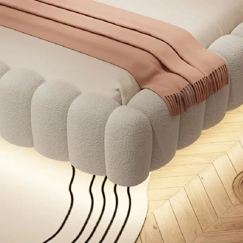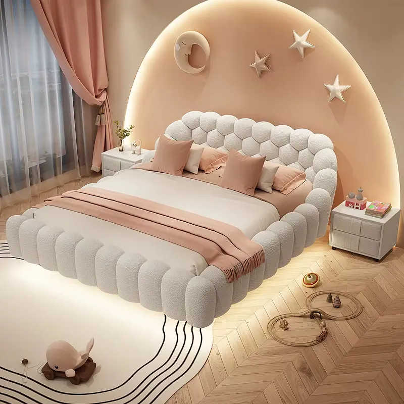 تم تصنيع الهيكل من خشب هندسي قوي وخشب زان روماني عالي الجودة، لضمان المتانة والثبات لفترات طويلة. كما تم تغطية السرير بطبقة من القماش الناعم الفاخر المبطن بالإسفنج عالي الكثافة والمرونة، مما يوفر تجربة مريحة وآمنة للطفل، مع سهولة التنظيف عند الحاجة.