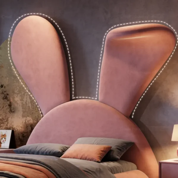 This bunny-shaped children's bed is the perfect choice for your child's room. Made of high-quality engineered wood and Romanian beech wood, it's upholstered in premium fabric and lined with high-density foam for comfort and durability. It features a modern design and a variety of colors to complement any decor. Available in three perfect colors, it comes with a two-year warranty against manufacturing defects.