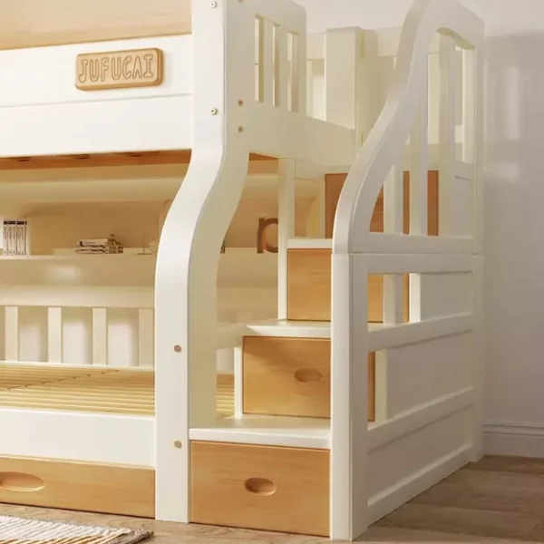 A practical and stylish children's bed, featuring a space-saving bunk design, ideal for children's rooms. Made from high-quality engineered wood and Roman beech wood to ensure durability and strength. Available in wood and white to complement various decors, it provides comfort and safety for your child and is easy to clean with a simple wipe. It comes with a two-year warranty against manufacturing defects in the GCC, making it an ideal choice for your child's bedroom.