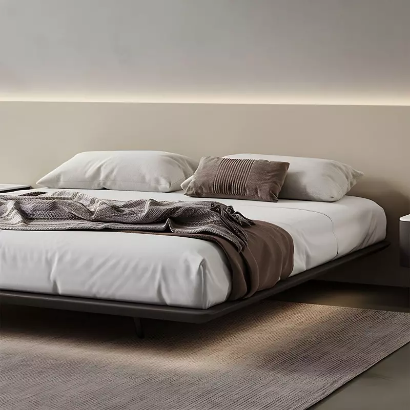 Modern hanging bed with downlights. Looking for a stylish and contemporary bed that will add a touch of beauty to your bedroom? Here's a modern hanging bed from the distinguished Master Room store. This bed features a unique design that combines elegance and functionality, making it an ideal piece of furniture for any bedroom.