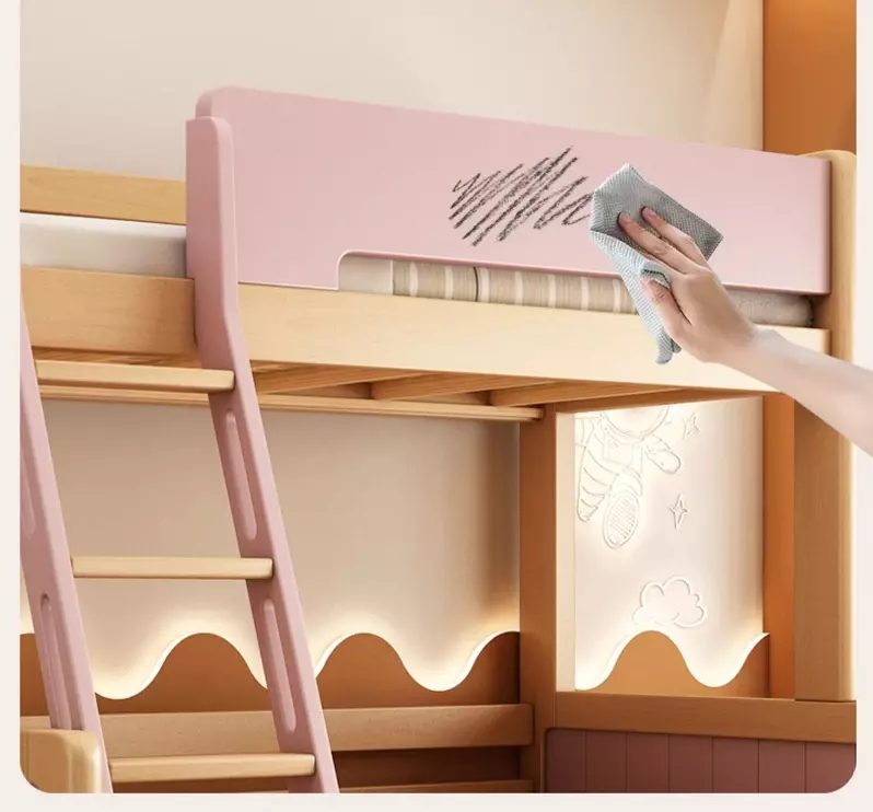 إضافة هذا السرير إلى غرفة نوم طفلك ستضفي لمسة من الأناقة والتميز. كما يمكن تنظيفه بسهولة بمسحة رقيقة فقط عند الحاجة، مما يجعله عمليًا ومناسبًا لحياة يومية نشطة.