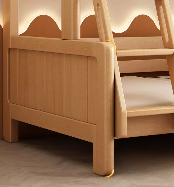 مصنع الهيكل من خشب هندسي وخشب زان روماني عالي الجودة، مما يضمن لك منتجًا يدوم طويلاً. الأخشاب المختارة بعناية توفر متانة وأناقة في آن واحد، مما يجعل السرير إضافة مميزة لغرفة نوم طفلك.
