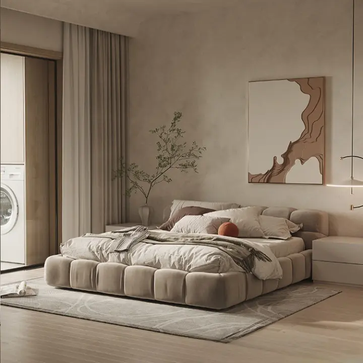يعتبر السرير الأرضي خيارًا ممتازًا لأولئك الذين يفضلون النوم على مستوى الأرض. يتميز بتصميمه المنخفض والأنيق، ويمنح الغرفة مظهرًا عصريًا ومريحًا.