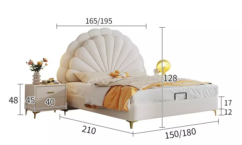 قياس سرير 200 سم:الارتفاع: 128 سم، العمق: 210 سم،عرض المنتج: 200 سم.
