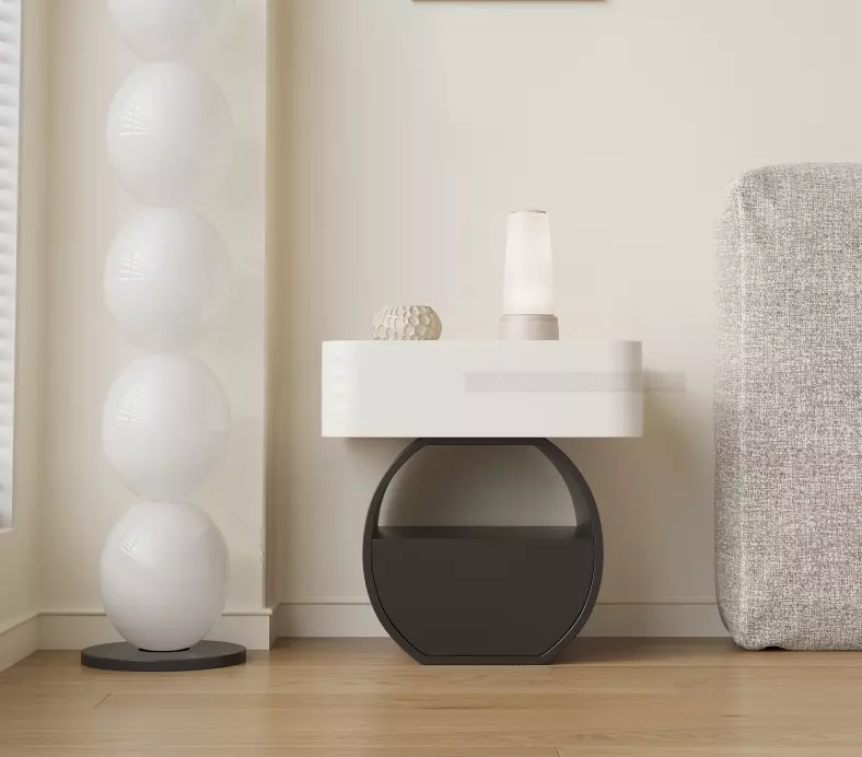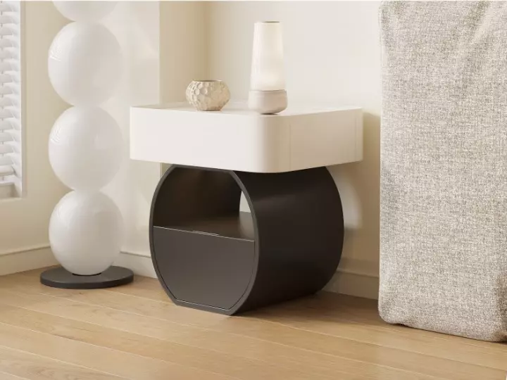 Add a practical and elegant touch to your bedroom with this bedside table, designed with a modern circular base. It's easy to clean and highly durable to meet your daily needs.