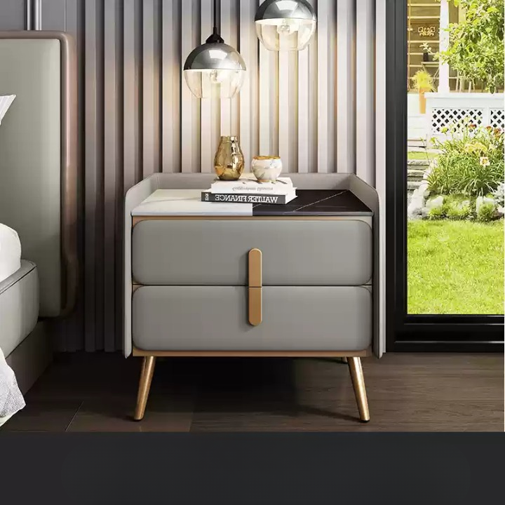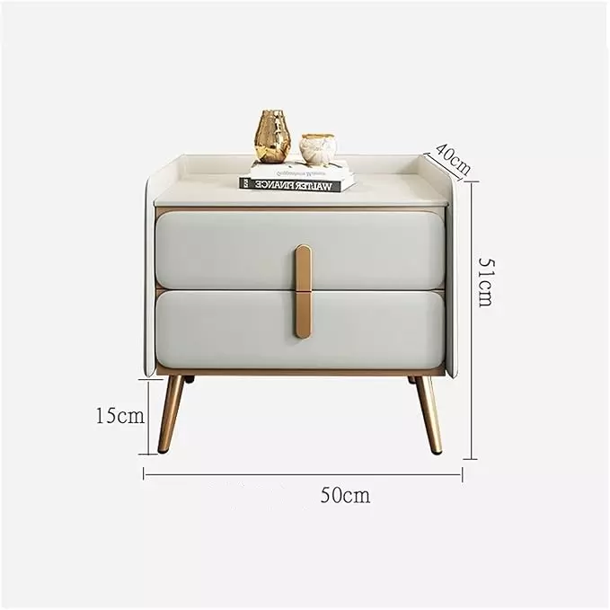 This luxuriously designed side table combines elegance and practicality. It's crafted from high-quality engineered beech wood and upholstered in premium leather. It features sturdy metal legs and a luxurious marble top. Its modern design complements a variety of decors, with a variety of colors adding a sophisticated touch to your room. It's easy to clean and comes with a two-year warranty against manufacturing defects. Perfect for adding a touch of luxury and functionality to your bedroom.