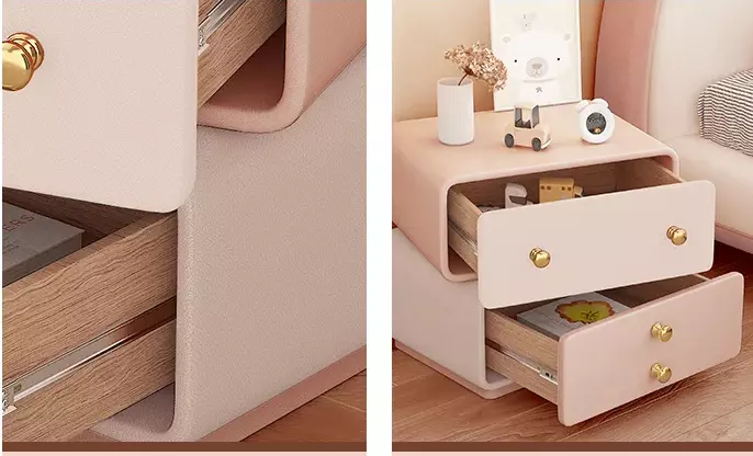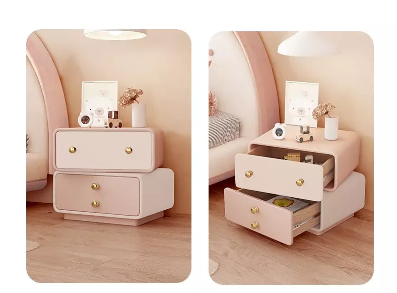 أضف لمسة من الجمال والتنظيم إلى غرفة النوم مع هذه الطاولة الجانبية المصممة خصيصًا للفتيات. تتميز بهيكل مصنوع من خشب هندسي وخشب زان عالي الجودة، مما يمنحها المتانة واللمسة الفاخرة. السطح الخارجي مغطى بجلد عالي الجودة لإضفاء مظهر أنيق وسهل التنظيف. بفضل تصميمها العملي، توفر الطاولة مساحة كافية لحفظ مستلزماتك الشخصية، سواء كانت كتبًا، إكسسوارات، أو أدوات أخرى.