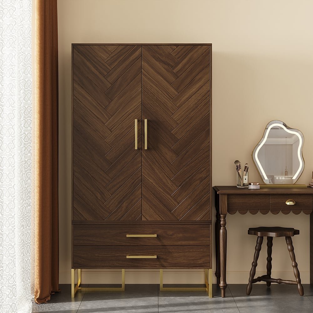 خزانة ملابس مع أدراج بتصميم عصري تم تصنيع هذة الخزانة من خشب هندسي وخشب زان روماني عالي الجودة، ما يمنحها قوة تحمل ممتازة وثباتًا طويل الأمد. هذه الخامات المختارة بعناية تضمن المتانة وتضيف شعورًا بالفخامة إلى الغرفة.
