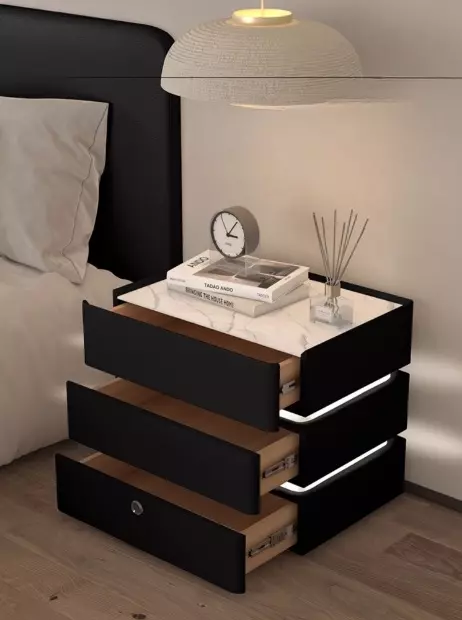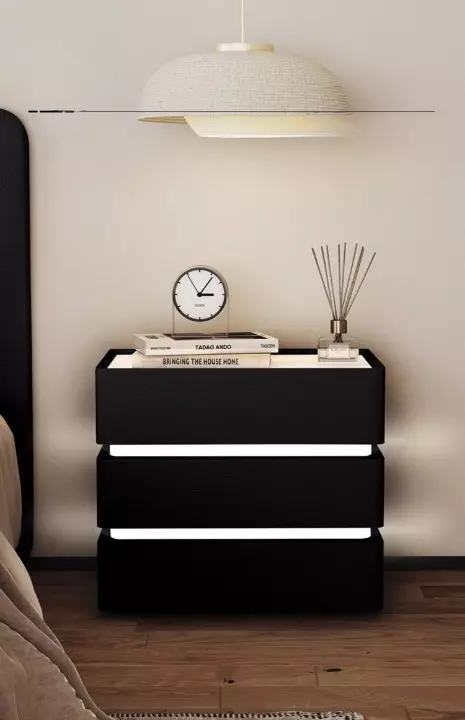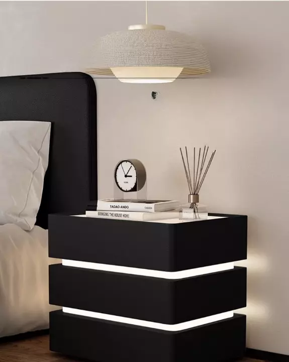 استمتع تفاصيل غرفتك مع bedside table الذي يجمع بين البساطة والأناقة في تصميم واحد مبتكر بلمسته السوداء الفاخرة وخطوطه المضيئة العصرية يتحول من مجرد قطعة تخزين إلى عنصر ديكوري مميز يضفي أجواء راقية وهادئة إنه الاختيار المثالي لمن يبحث عن العملية دون أن يتخلى عن لمسة فنية تلفت الأنظار.