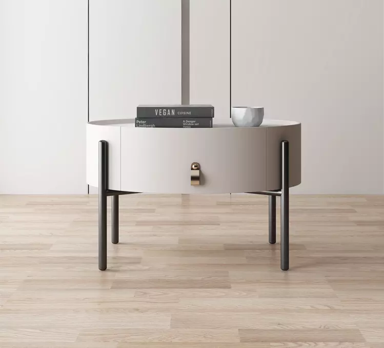 - كما أنها مزودة بدرج تخزين صغير بلمسة عصرية بمقبض جلدي أنيق ليتيح لك حفظ الأغراض الصغيرة بشكل منظم.